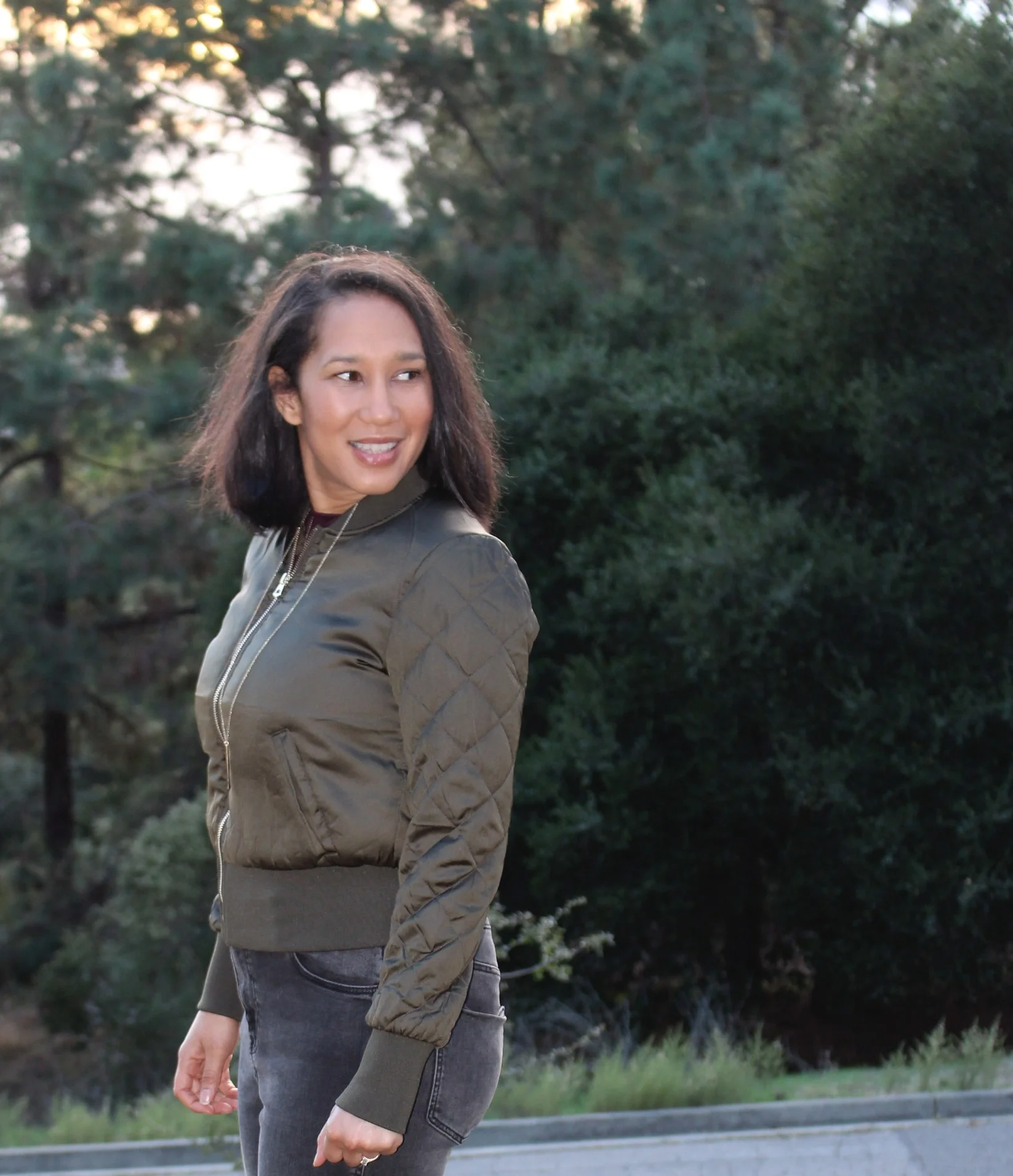 I usually steer clear from pieces of clothing that are super trendy for fear that I won't get much use out of it. The bomber jacket has been going strong for several consecutive years now and it's a fun piece to add to your casual street style. I love street style and have become a huge fan of the bomber jacket in fall and spring (including San Francisco summers) and I was happy to add it to my wardrobe this year. Especially this olive green number I'm wearing! It's a great color for fall and I'm already able to wear it with a lot of my clothes I've been wearing for this season anyway.